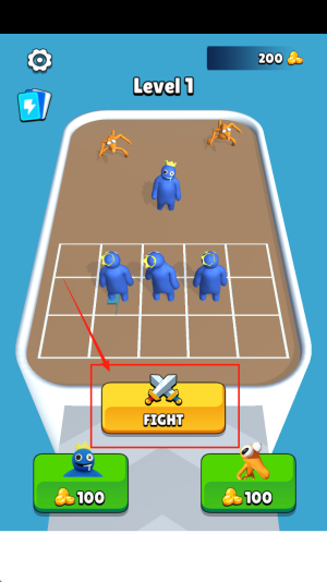 4、出现“Level 1 FIGHT 8-100”提示后,点击“FIGHT”按钮,开始第一关战斗。