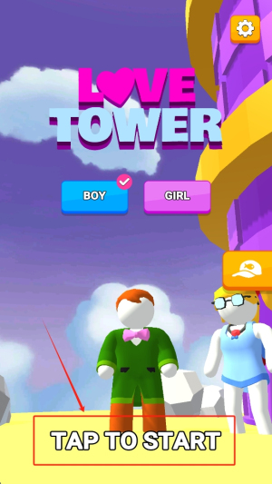 2、接着,通过点击屏幕控制角色跳跃,一层一层地向上建造爱情塔。