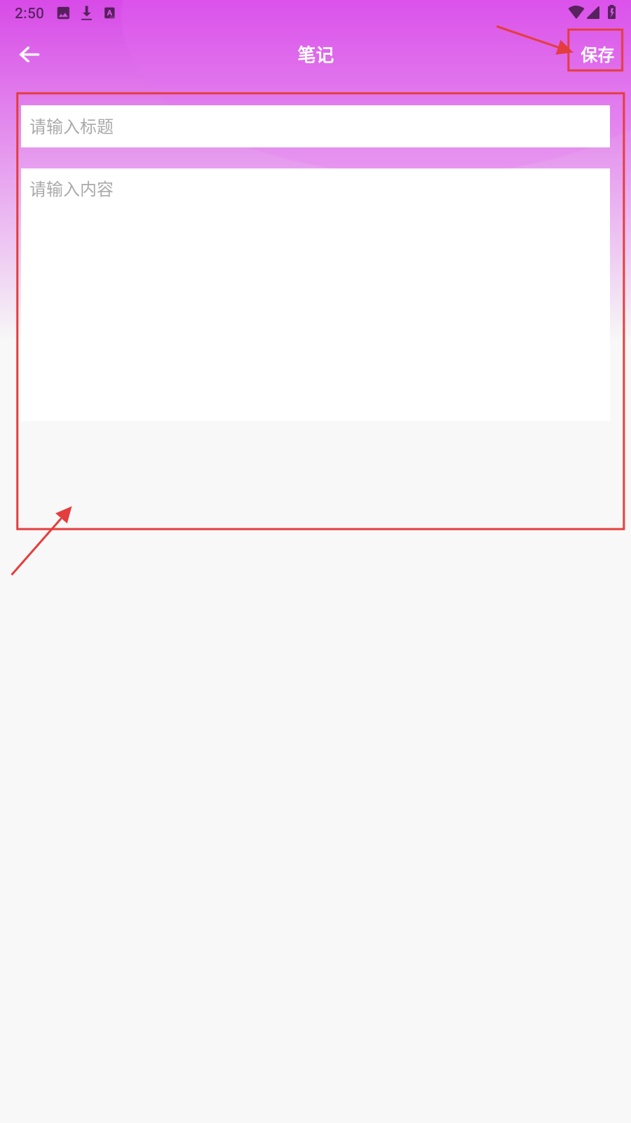 4、在【笔记】页面,输入标题和内容后,点击【保存】按钮保存笔记。