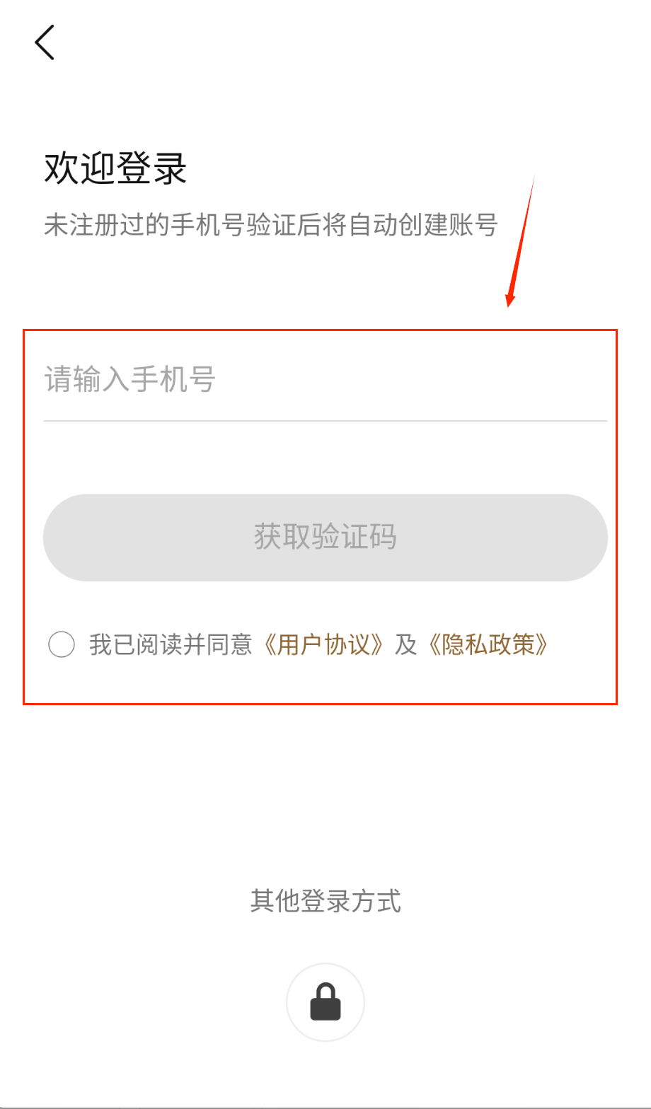 1、打开追觅优选APP,点击"同意并继续"按钮完成初始界面引导,进入应用主页面。在登录界面输入注册手机号码,并通过短信验证码完成验证。