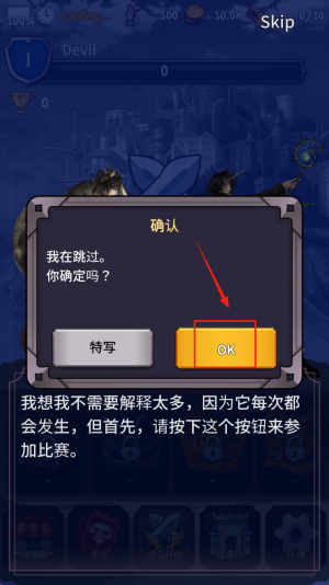 2、点击“确认”跳过10小时等待,再点“OK”正式加入比赛。