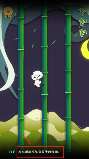 3、然后,了解基本操作,向右滑动屏幕以控制熊猫在竹子间移动。