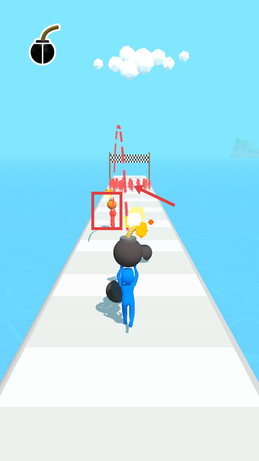 炸弹赛跑是一款结合跑酷与投掷元素的动作竞技手游,核心玩法是操控角色高速前进同时收集场景中的爆炸物。通过精准投弹消灭前方障碍与敌对目标,流畅操作实现跳跃滑行等跑酷动作。数十位角色拥有独特移动特性与投掷技能,支持个性化培养解锁新能力。关卡设计包含动态变化赛道与随机陷阱布局,道具系统提供护盾加速等战术支援,快节奏对抗搭配特效反馈释放压力,全球排行榜激发持续突破动力。