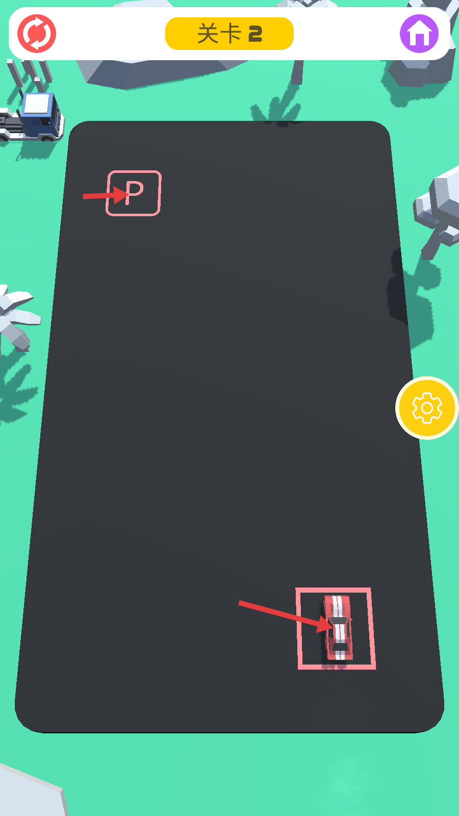 1、色彩匹配系统:每台车辆标注专属颜色标识,需停入同色目标区域完成配对,视觉引导降低认知门槛强化规则理解。