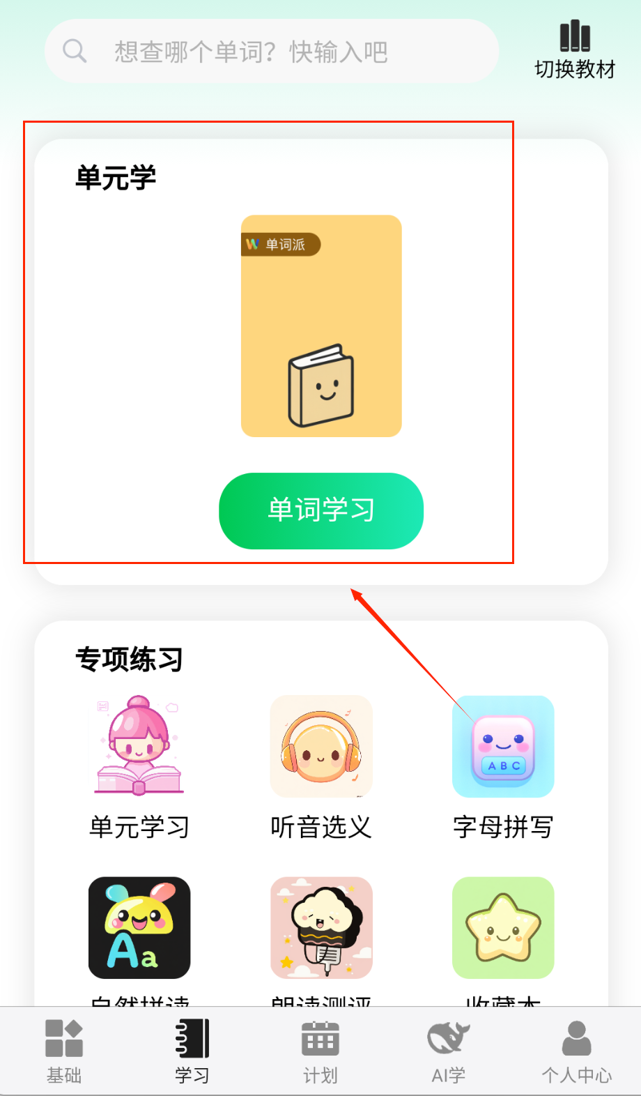 1、打开APP选择学习模式,从海量词库中挑选单词,设置每日学习目标哦。