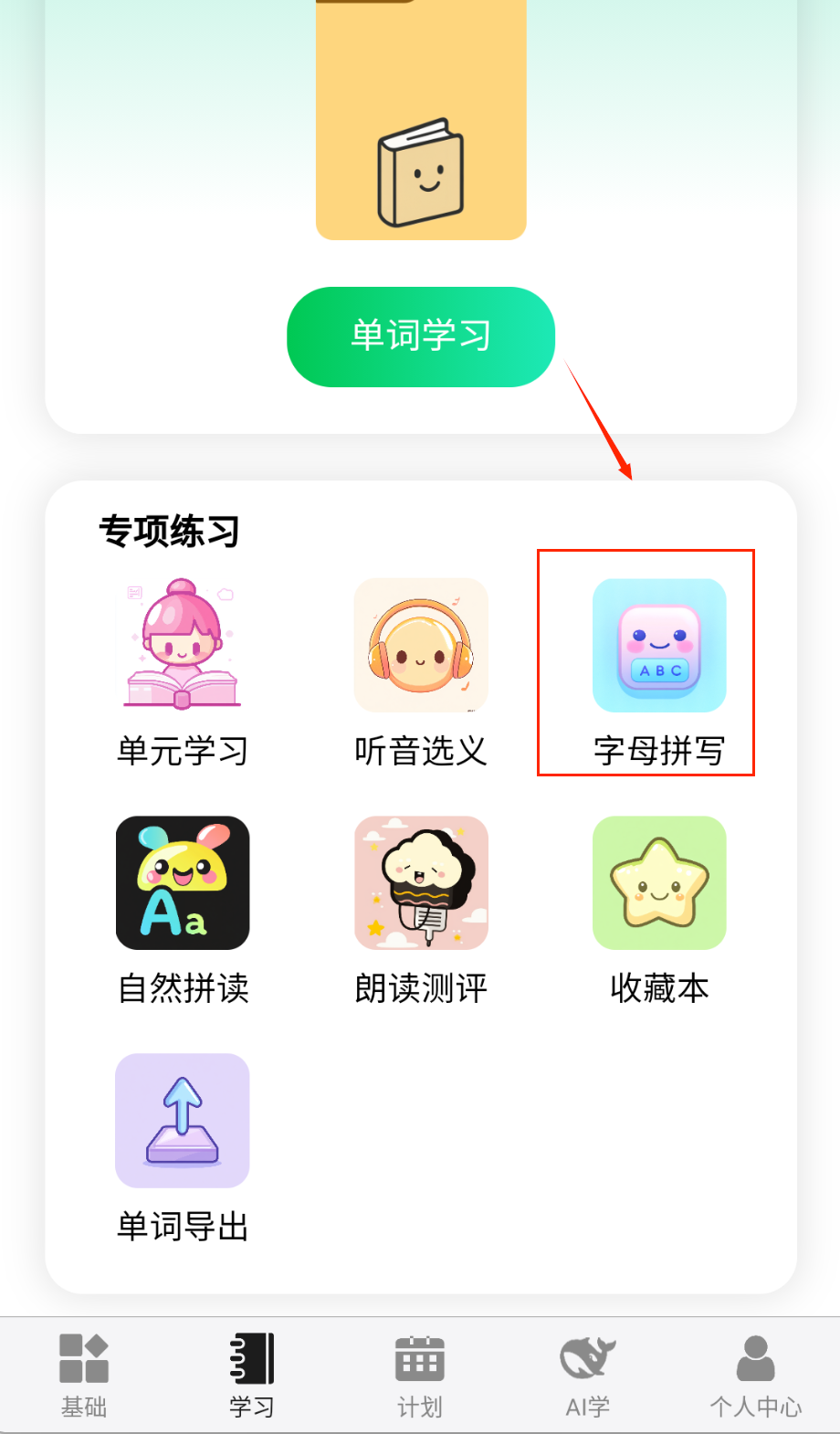 3、练习功能进行拼写测试和选择题训练,并且实时反馈正确率提升记忆效果呀。