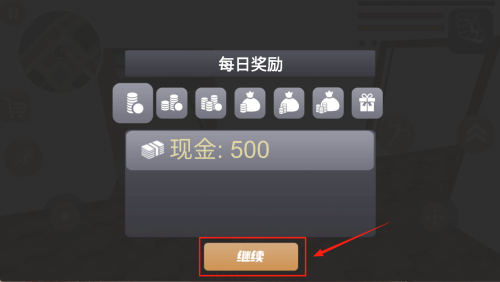 3、进入主界面后,出现“每日奖励”弹窗显示“现金:500”,点击“继续”即可领取奖励。
