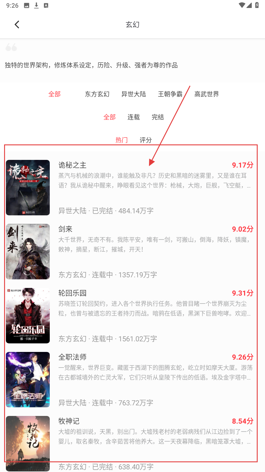 2、在【分类】页面,选择心仪的分类点击查看,如【玄幻】。