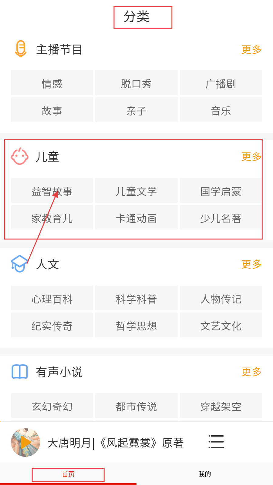 1、进入应用,在首页的【分类】页面,点击【儿童】分类进行查看。