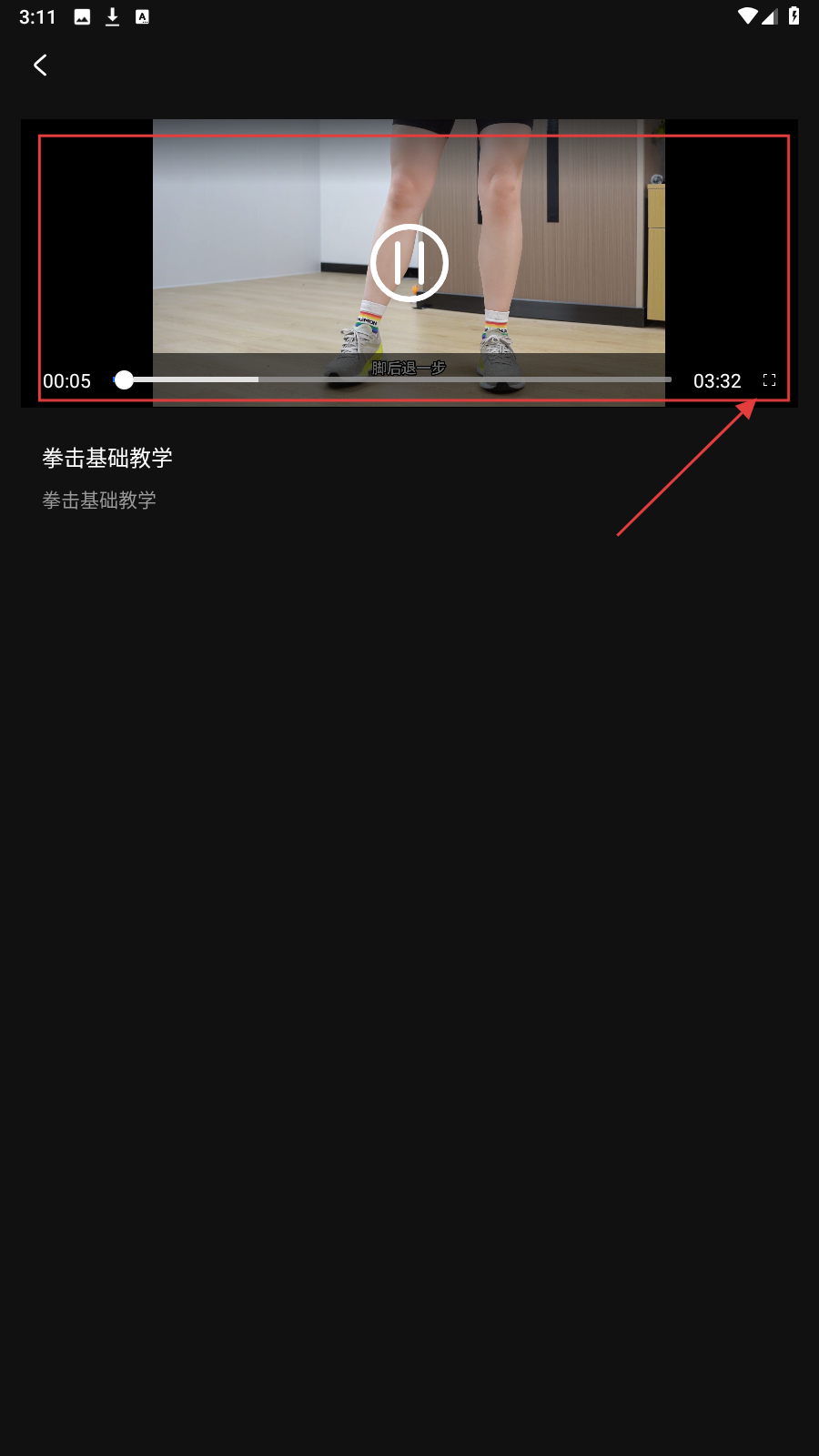 2、在视频教程区,选【拳击基础教学】视频,点击播放,学习拳击基础动作。