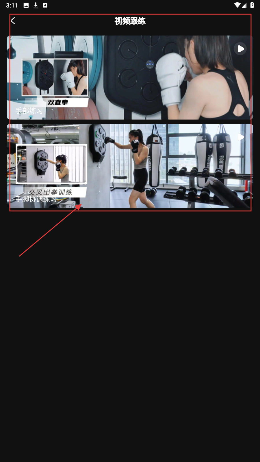 4、切换到【视频跟练】,选【交叉出拳训练】等内容,跟随实操,提升拳击技巧。