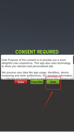 1、接受同意条款。点击“Accept”按钮,接受游戏的隐私条款并开始游戏。