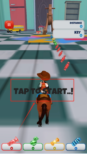 1、操控小马开始奔跑,尝试躲避首个障碍,拾取道具,熟悉加速和转向操作,完成短距离竞速,开启游戏,上手轻松无压力。
