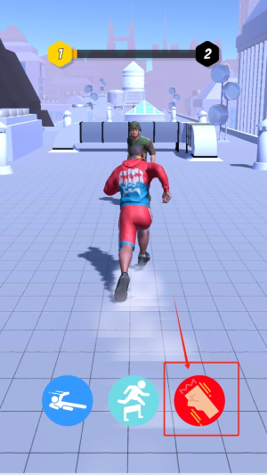 2、控制角色。使用屏幕上的虚拟按钮来控制角色移动,包括跳跃和滑行,以避开障碍。