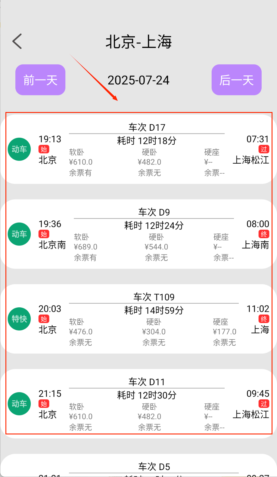 3、行程页面展示详细列车时刻表,支持设置发车前30分钟提醒和换乘指引功能呀。