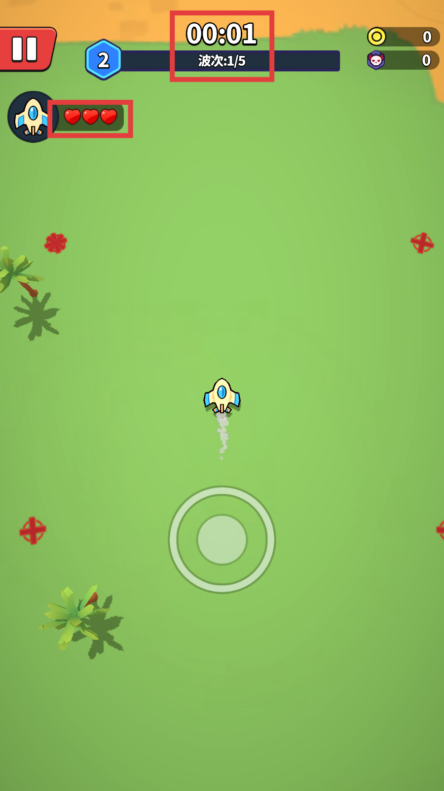1、核心操作流程:进入后介绍道具功能,移动躲避同时自动攻击敌人,结合辅助物品提升通关成功几率避免失误。