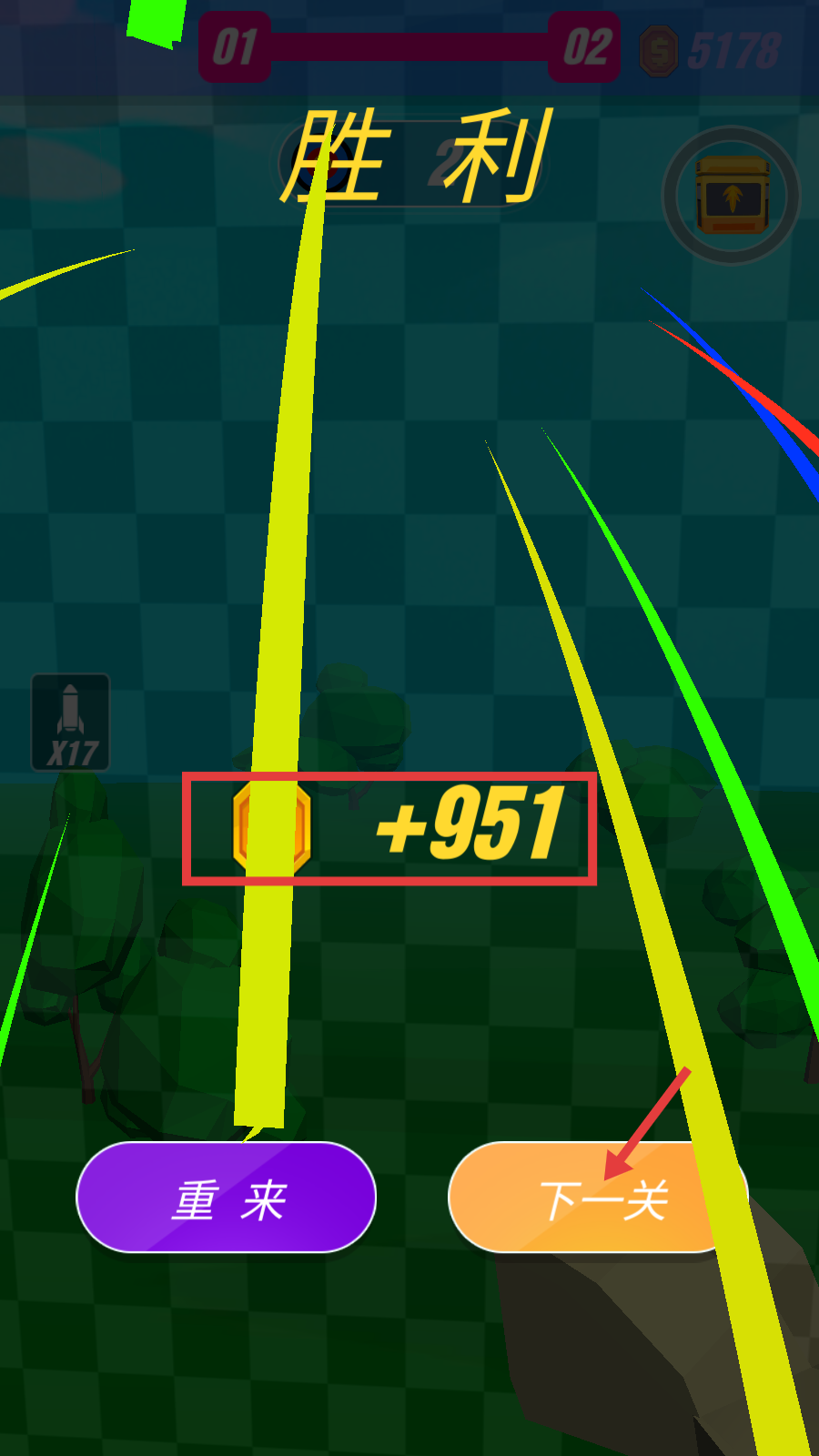 4、成功通关后可获得金币奖励,点击【下一关】继续挑战,积累资源解锁更强战机。