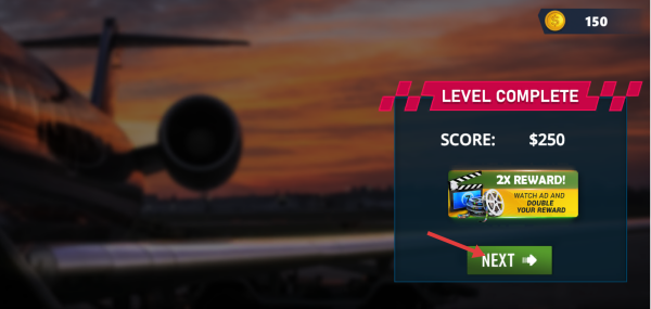 4、成功通关后,点击【NEXT】继续下一关,积累金币和经验,提升飞行技巧和飞机性能。