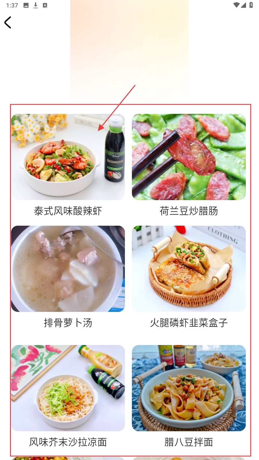 2、进入更多菜谱页,挑选感兴趣菜品,如【泰式风味酸辣虾】,点击可查看做法,尝试新菜。