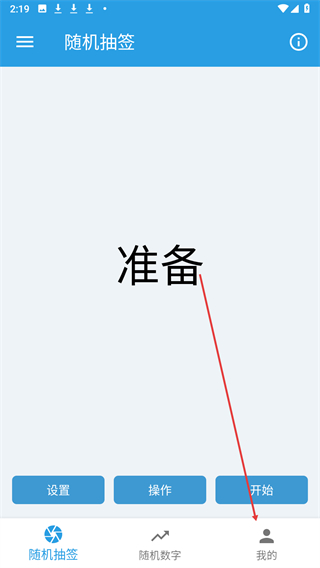 1、打开随机抽签选择器进入首页,点击底部我的选项进入个人界面。