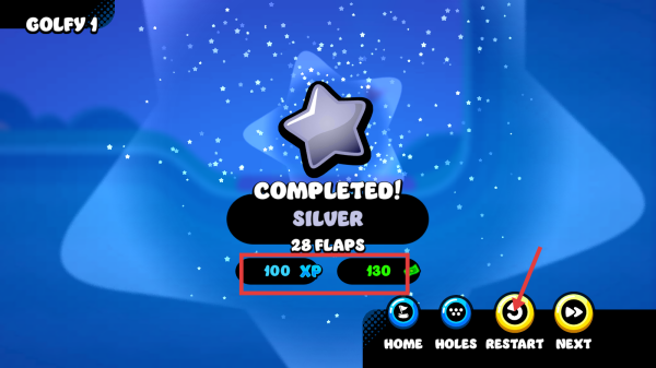 4、成功通关后,如果想获取更高的奖励,点击【RESTART】按钮,能重新挑战该关卡。