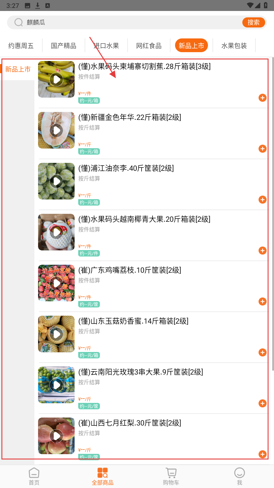 3、点【新品上市】分类,查看新上架水果,选感兴趣的点进详情。