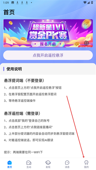 1、打开优主播进入首页,点击点我开启遥控悬浮按钮。
