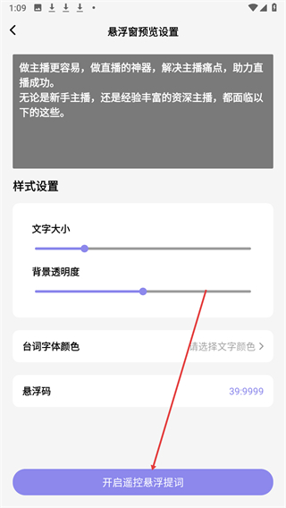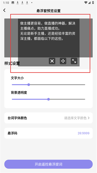 2、在悬浮窗预览设置页,点击开启遥控悬浮提词。