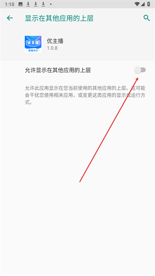 3、在权限界面,打开允许显示在其他应用的上层功能开关。