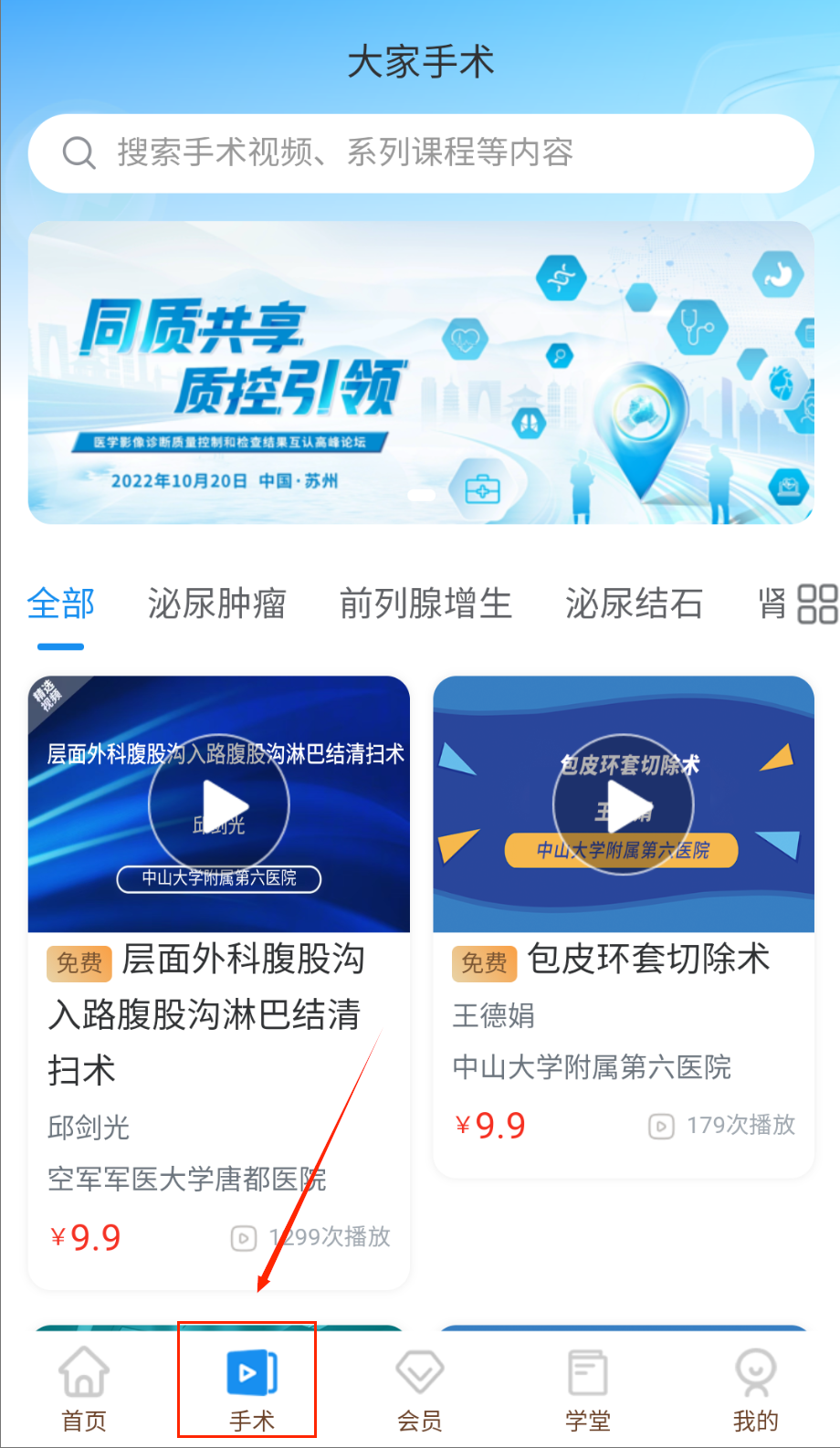 2、手术视频分为普外、神外等8大科室专区,支持1080P高清播放和关键步骤慢放标注啦。
