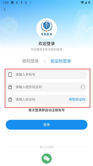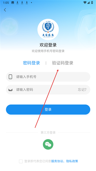 3、在登录页面选择验证码登录选项,切换至对应的登录界面。