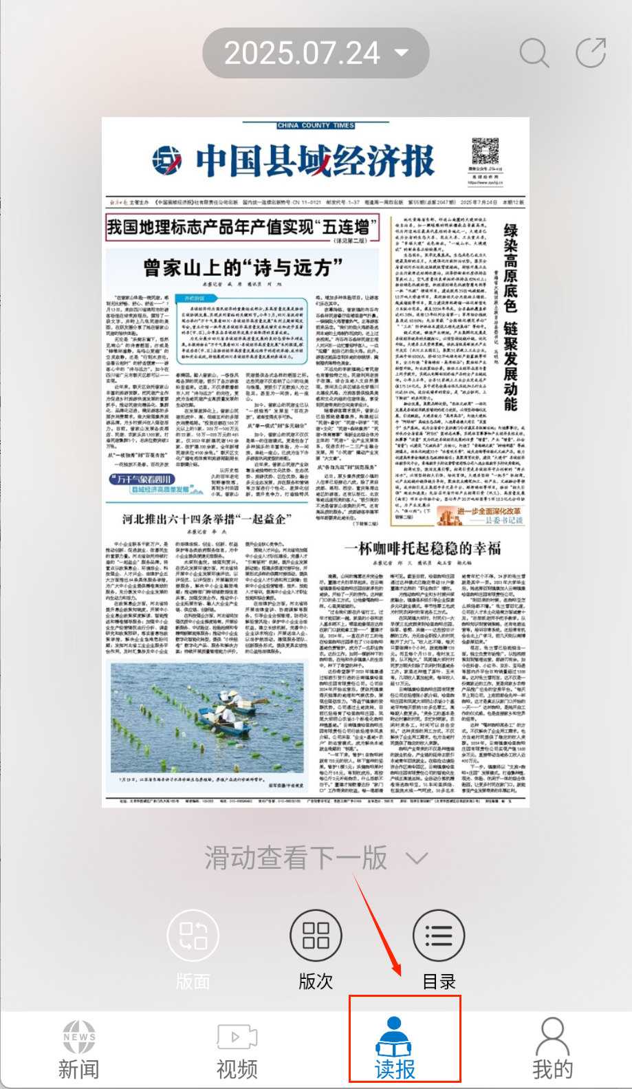 3、读报功能提供最新期刊电子版,可以支持字体缩放和夜间模式阅读体验呀。