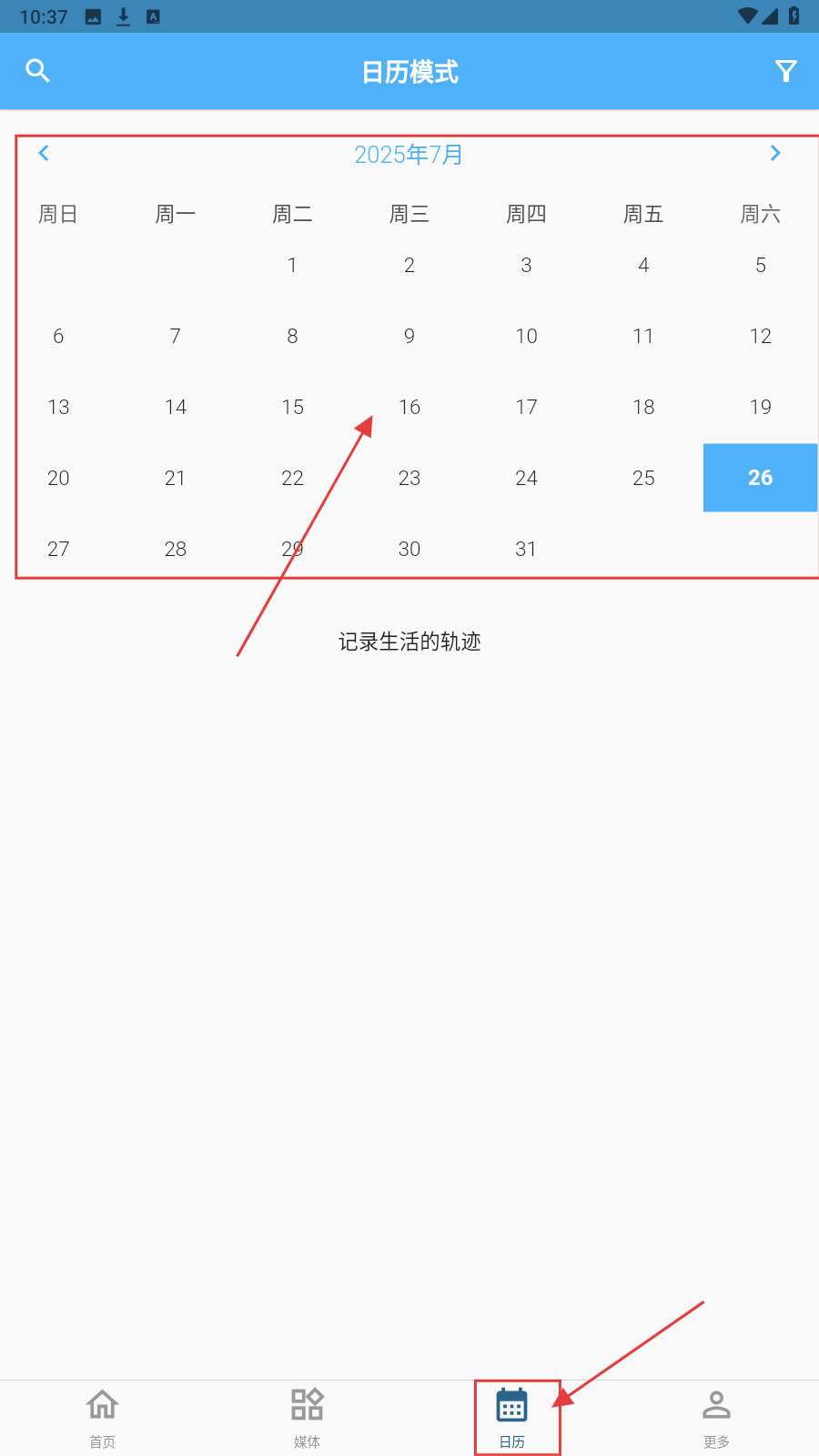 1、打开应用,进入【日历】页面,选择需要补习日记的日期。