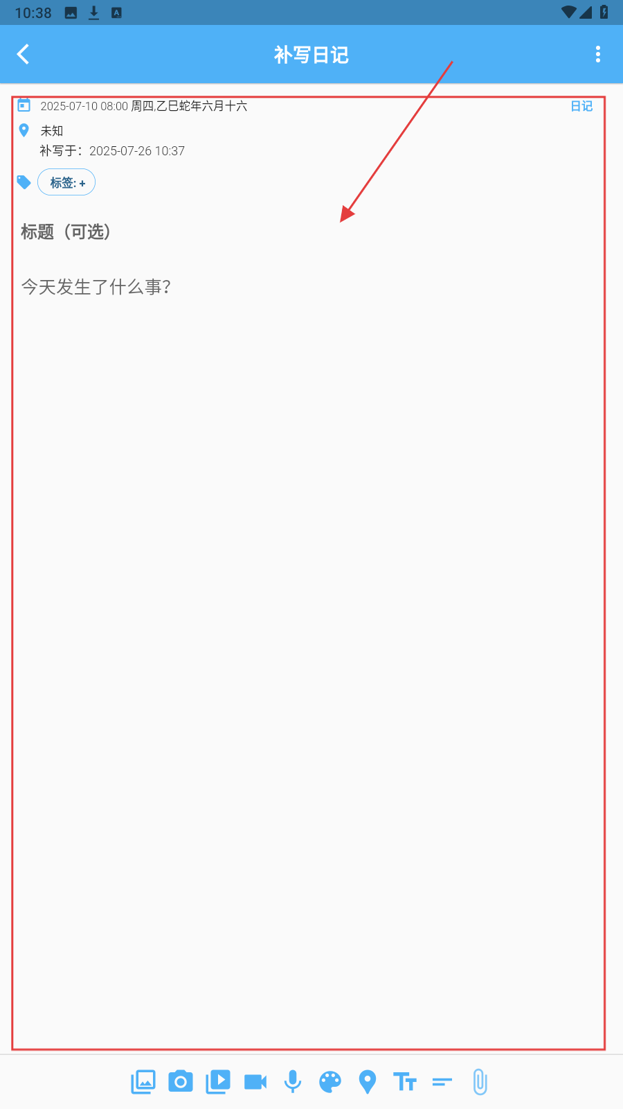 3、进入【补写日记】页面,输入需要补写的内容并保存。