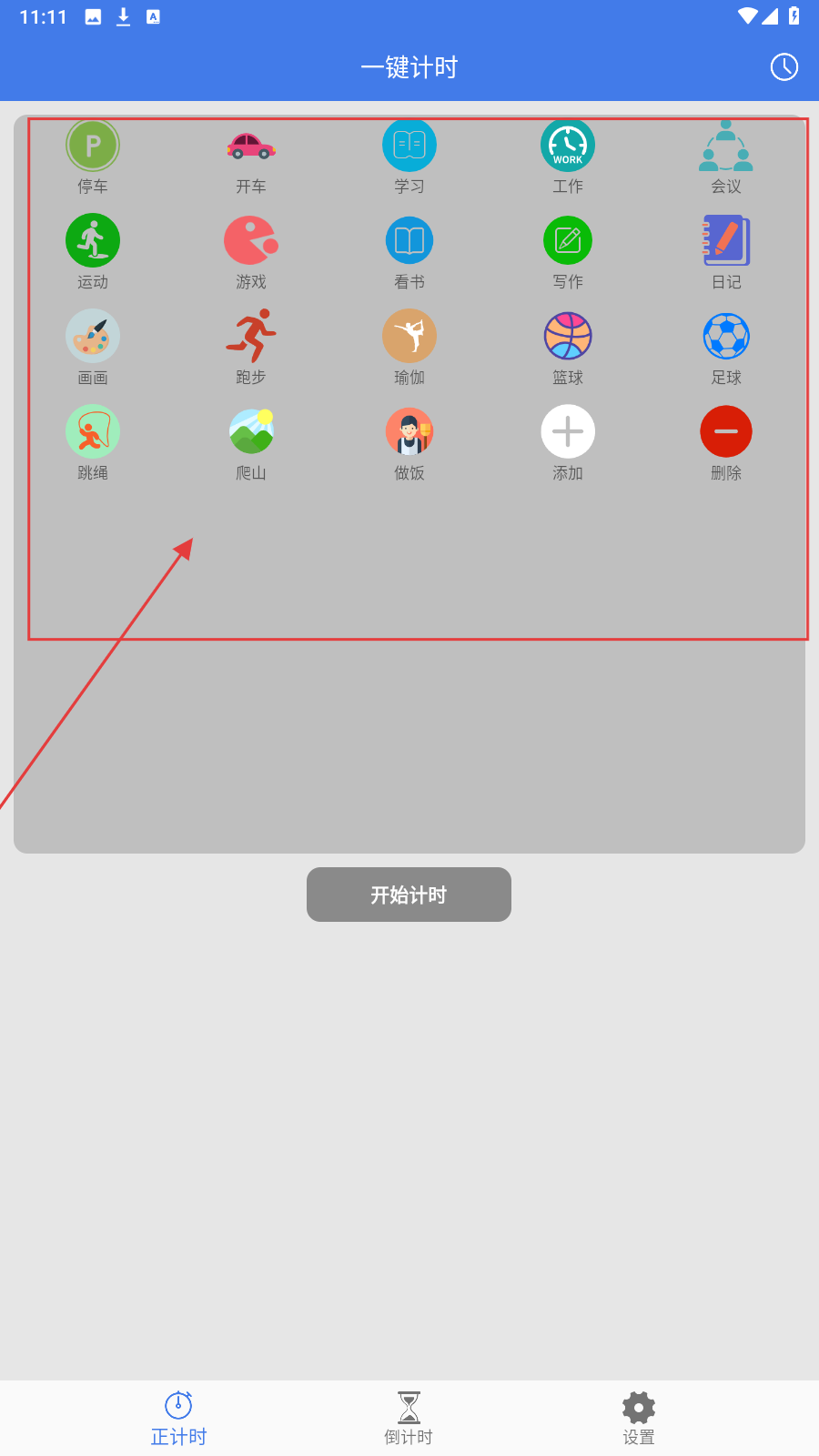 1、进入应用,选需计时的分类(如【停车】【运动】等),点击对应图标。
