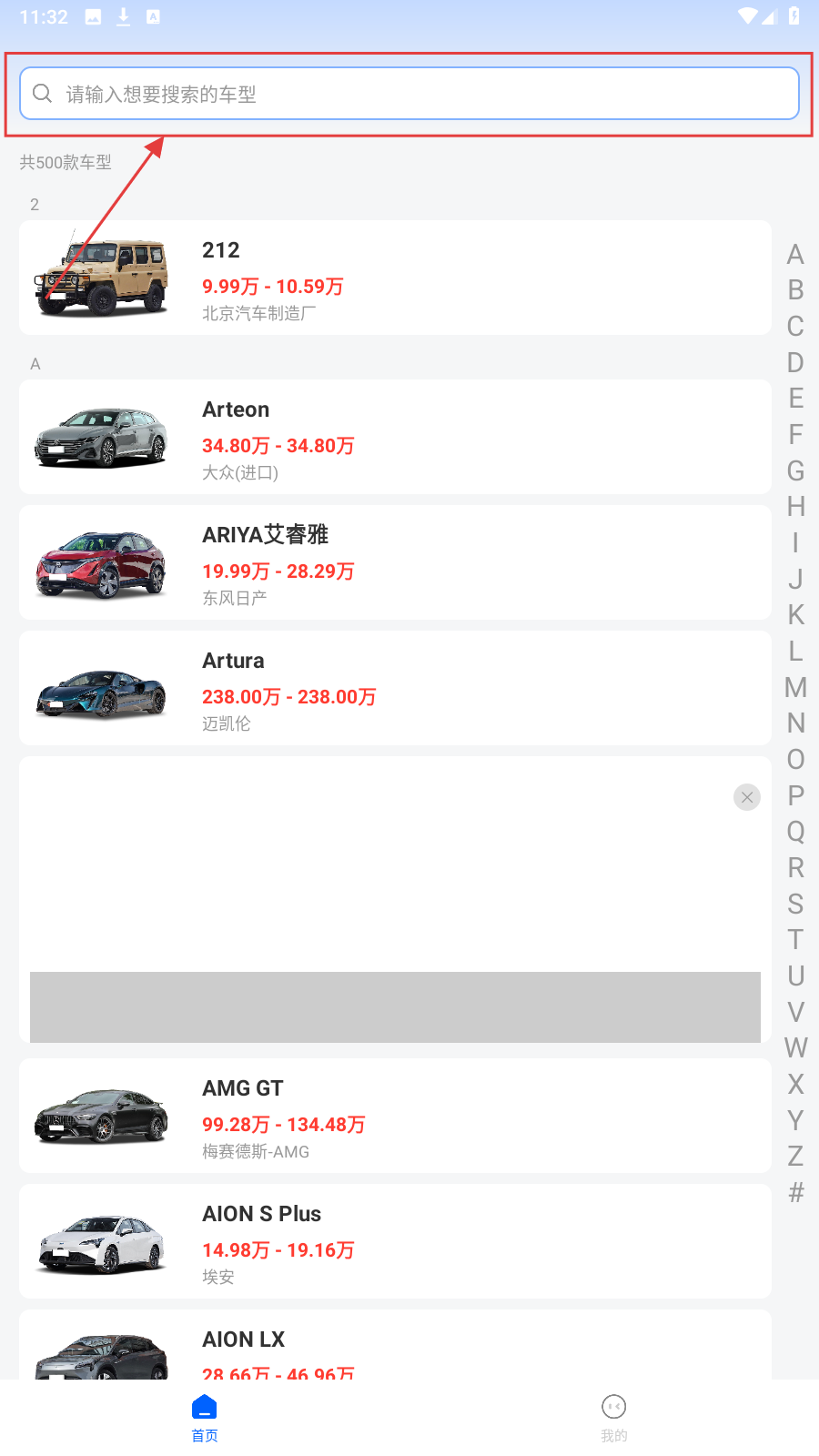 1、在搜索栏【请输入想要搜索的车型】填车型名,快速定位目标车。