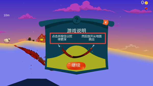 1、点击开始按钮,进入游戏,查看游戏说明,学习点击挖地和跳出地面的操作。
