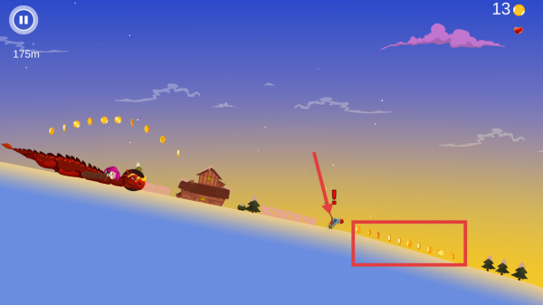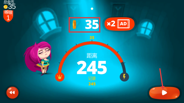 2、控制小魔女,在地面上挖掘,收集金币,注意躲避障碍,提升移动距离。