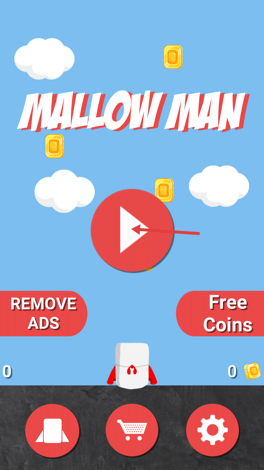1、点击开始按钮,进入游戏,控制棉花糖人,开始冒险挑战。