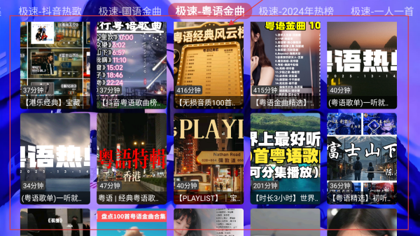 2、在【极速-粤语金曲】分类里,浏览多样歌单,根据时长、主题,挑感兴趣的点击播放。