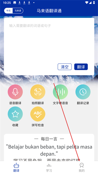 1、打开APP选择文本或拍照翻译模式,输入马来语或拍摄文档照片,系统自动识别语言并快速翻译成中文或英文哦。