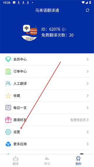 1、打开马来语翻译通应用,点击底部右侧的我的选项。