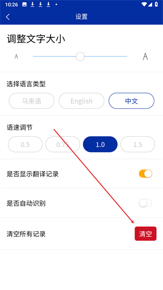 3、在设置页面中,找到清空所有记录的清空并点击。