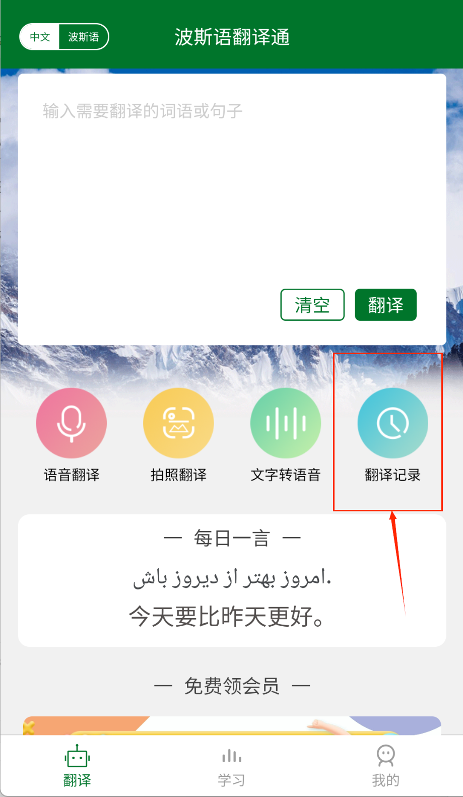 2、语音翻译功能长按麦克风说话,实时将波斯语转换为文字并翻译,支持发音跟读练习啦。