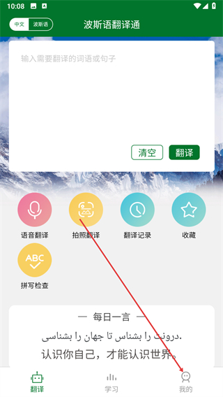 1、打开波斯语翻译通应用,点击界面底部右侧的我的选项。