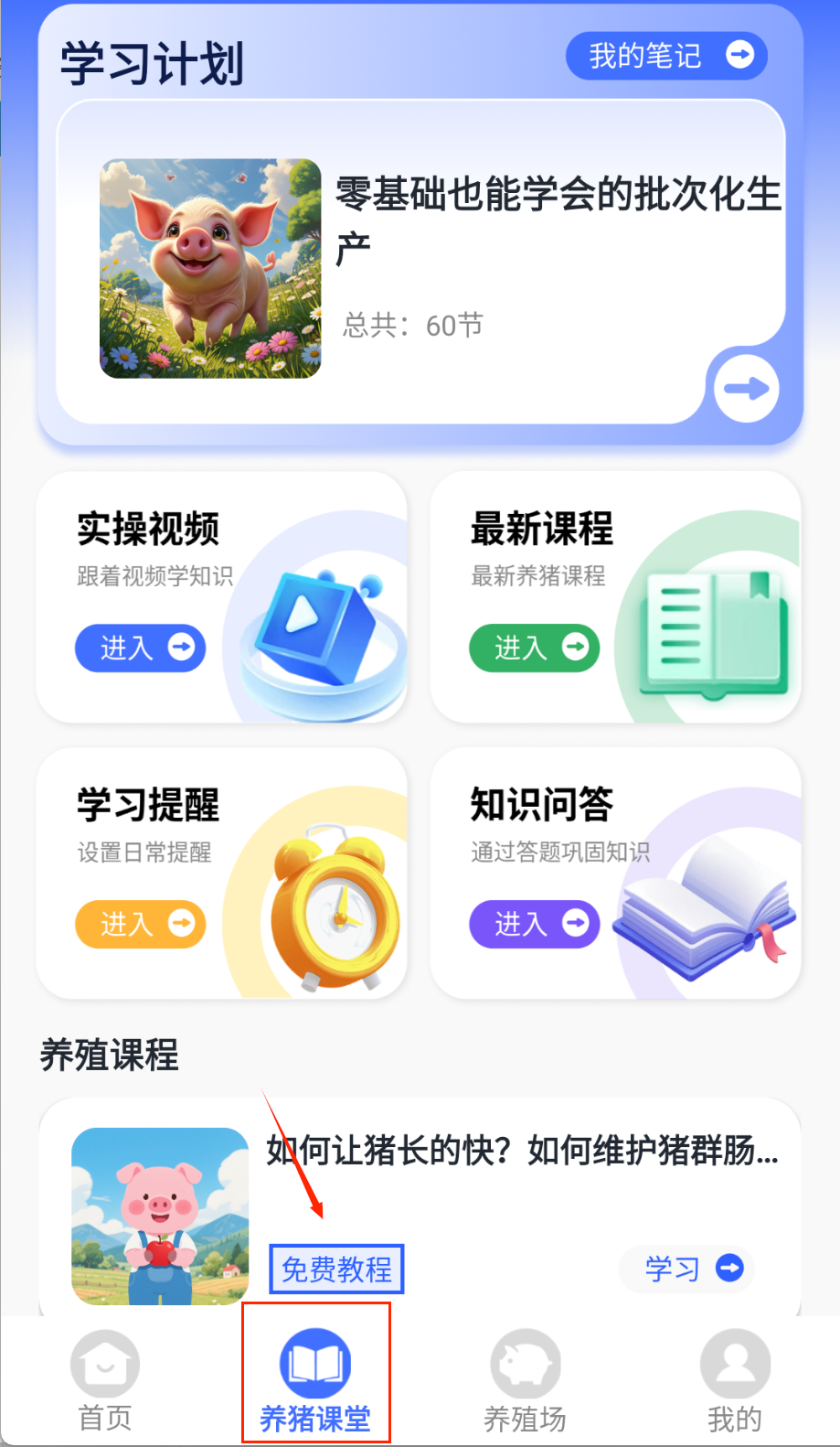 1、新用户注册需填写养殖规模和经验,系统基于用户画像智能推荐适合的养猪技术课程和实操演示视频哦。