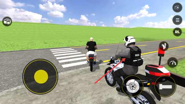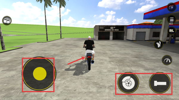2、使用虚拟按键控制摩托车,左侧摇杆控制方向,右侧按钮控制刹车和加速。