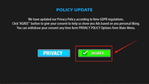 1、在“POLICYUPDATE”界面点击“AGREE”同意隐私政策以继续。