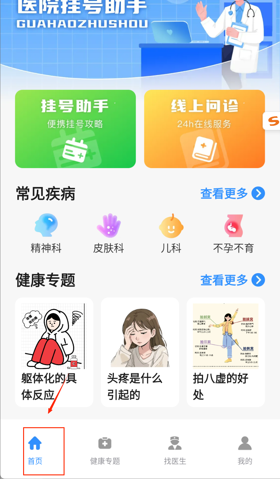 1、新用户注册后进入城市选择页面,系统会根据定位自动推荐附近三甲医院及特色科室信息哦。
