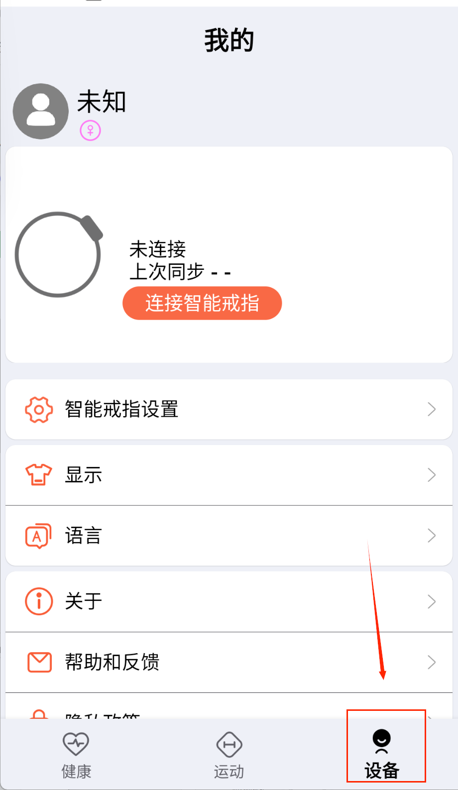 1、新用户注册完成后,在设备管理页面点击添加设备,选择智能戒指型号进行蓝牙配对连接哦。